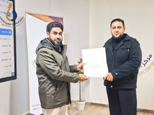وفي ختام الورشة، تم توزيع شهادات المشاركة على المتدربين، إلى جانب تقديم شهادة شكر وتقدير للمدرب عرفانًا بجهوده المتميزة وإسهاماته القيمة في إنجاح البرنامج التدريبي.