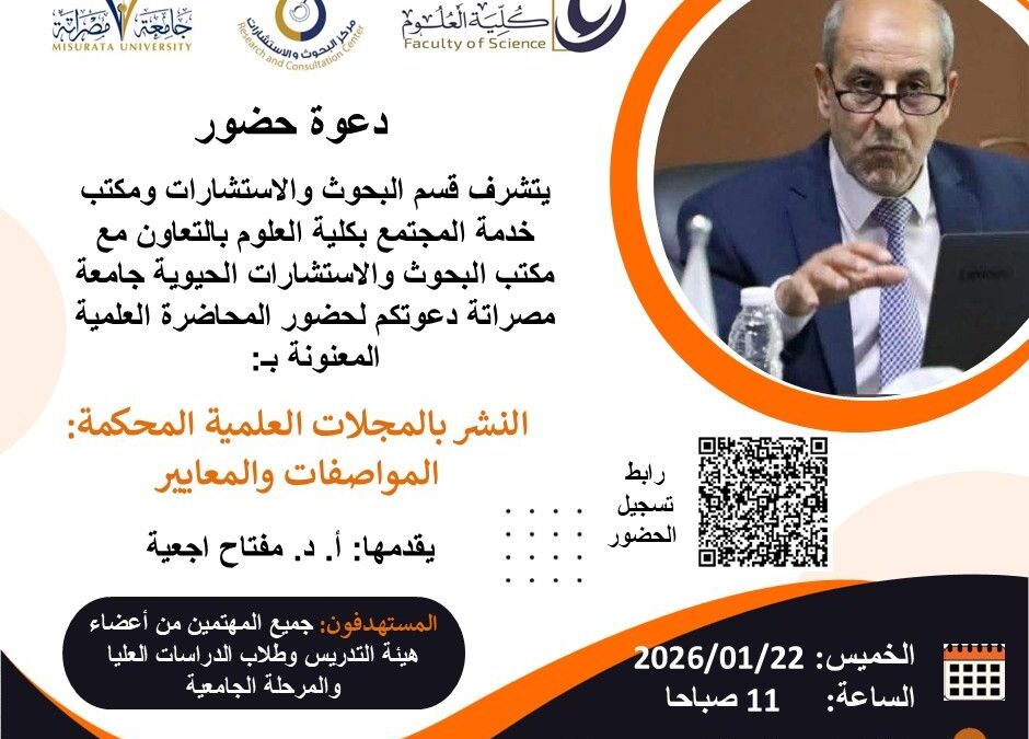 نأمل حضوركم والمشاركة لما للموضوع من أهمية في تطوير البحث العلمي وتعزيز جودة النشر الأكاديمي.