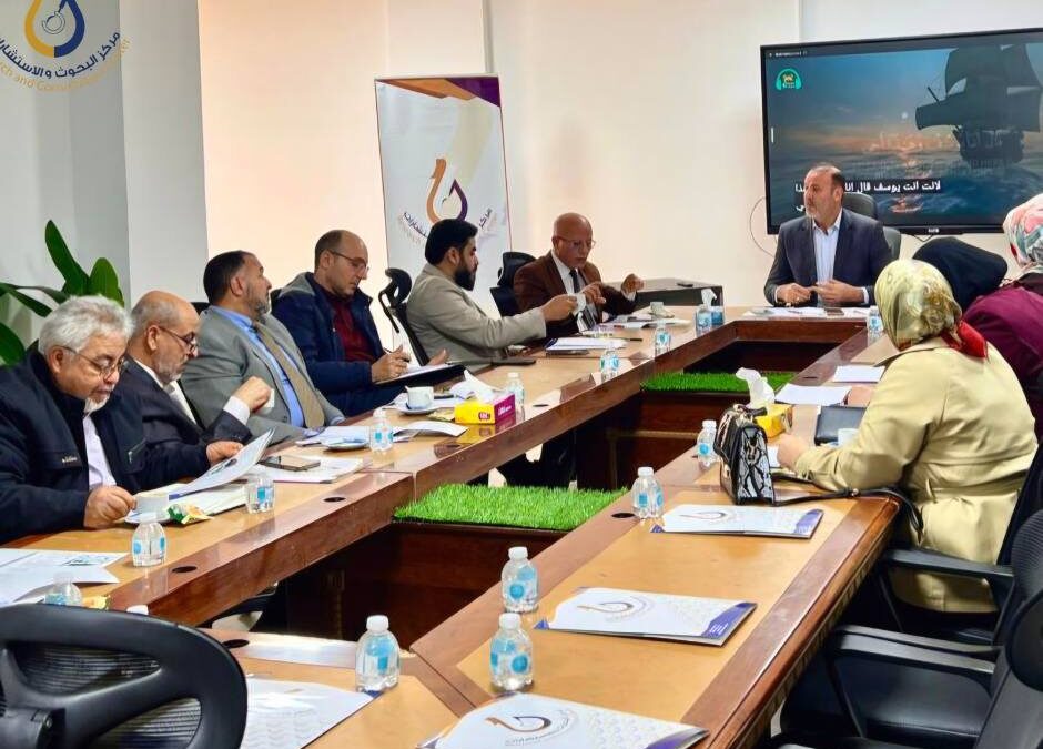 ويأتي هذا الاجتماع في سياق توجه مركز البحوث والاستشارات إلى ترسيخ ثقافة البحث العلمي التطبيقي، وتعزيز الشراكة بين الجامعة ومؤسسات الدولة والمجتمع، بما يتماشى مع توجهات الدولة الليبية الداعمة للابتكار وبناء اقتصاد قائم على المعرفة، وتحقيق أهداف التنمية المستدامة من خلال دعم البحث العلمي، وتمكين الكفاءات الوطنية، وتحفيز الحلول الإبداعية للتحديات التنموية.